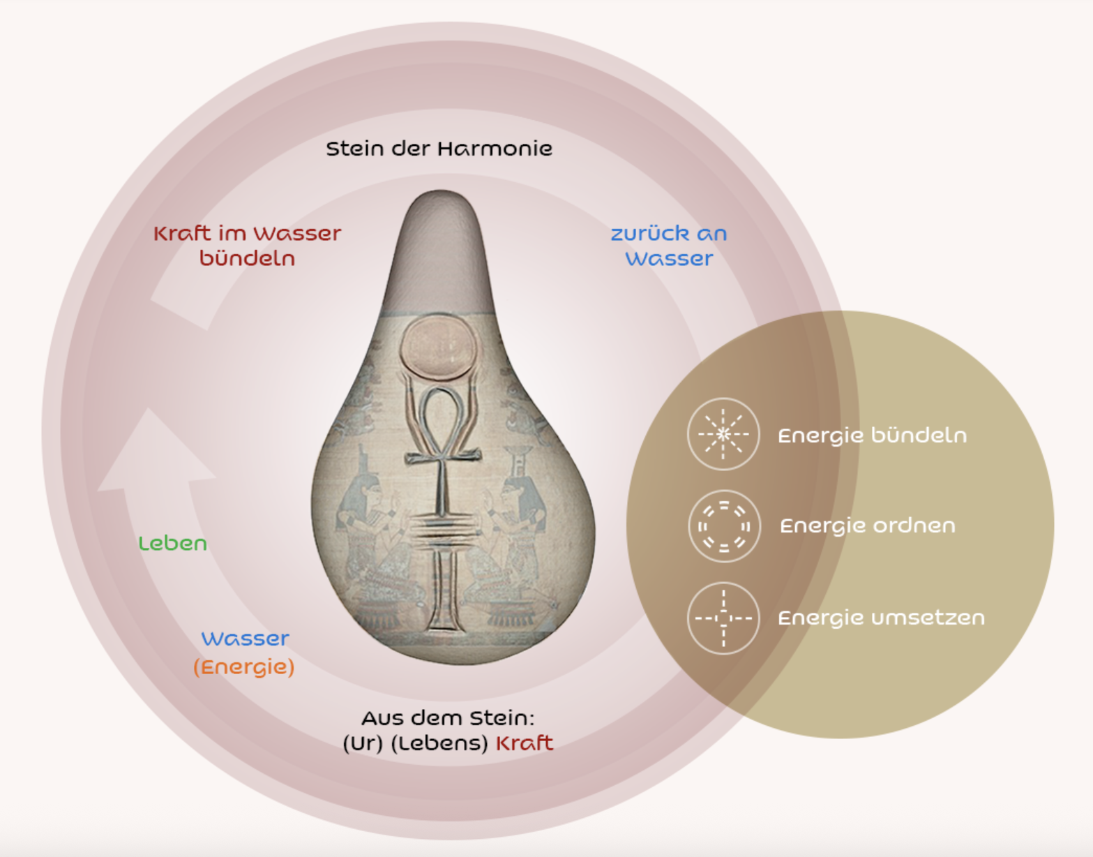 Die Entwicklung des Steins basiert auf langjähriger Forschung zu Wirbelfeldern, Schwingungen und fließendem Wasser. Während der Herstellung wird der Stein über Monate hinweg pulsierendem Wasser ausgesetzt, wodurch sich seine innere Struktur neu ordnet. So entsteht ein Resonanzkörper, der mit dem menschlichen Energiefeld in Einklang treten kann.